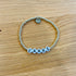 Size: adjustable, fits most. Material: gold beaded bracelets with black cord with white letters