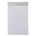 5x8 notepad with gold foil printed on neon mint header